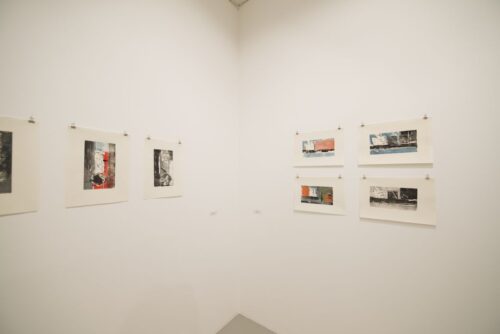 Die Arbeiten der Werkreihe Medienhafen sind Monotypien im Format 15 x 27 und 27 x 15. Ausgangspunkt für diese bildnerische Betrachtung war eine Auseinandersetzung mit der Distanz und Nähe, im Bezug zu Außen- und Innenraum der Architektur des Düsseldorfer Medienhafens. Durch die spezielle geographische Struktur und schräge Architektur, wie z.B. die Gehry-Bauten ist dieser Raum einzigartig. Intention war mit formalen Elementen wie Struktur, Linie, Oberfläche, Transparenz, Überlagerung und Verdichtung die spannende Varianz dieser schrägen Architektur einzufangen in lebendige Monotypien umzusetzen.