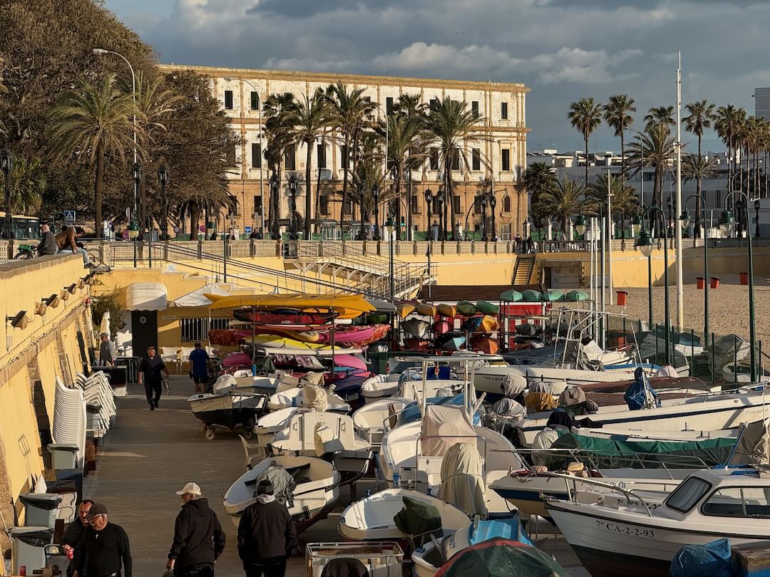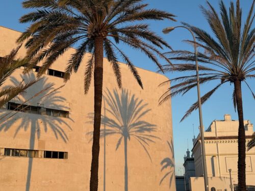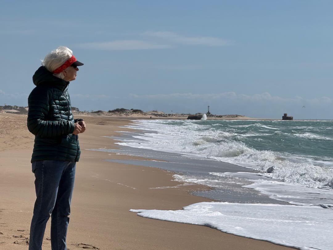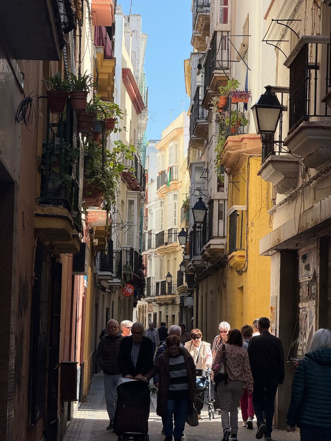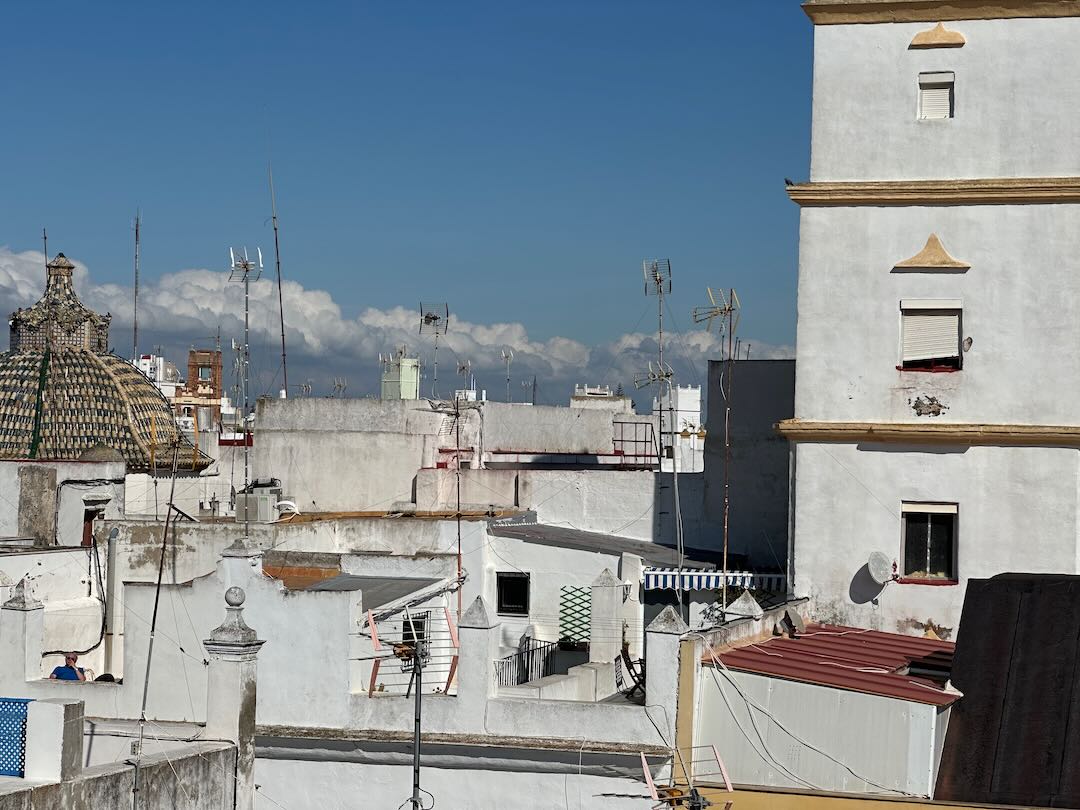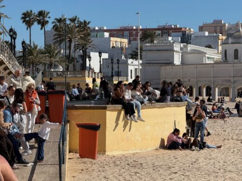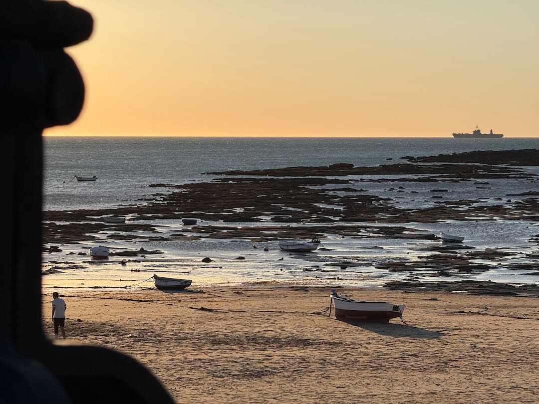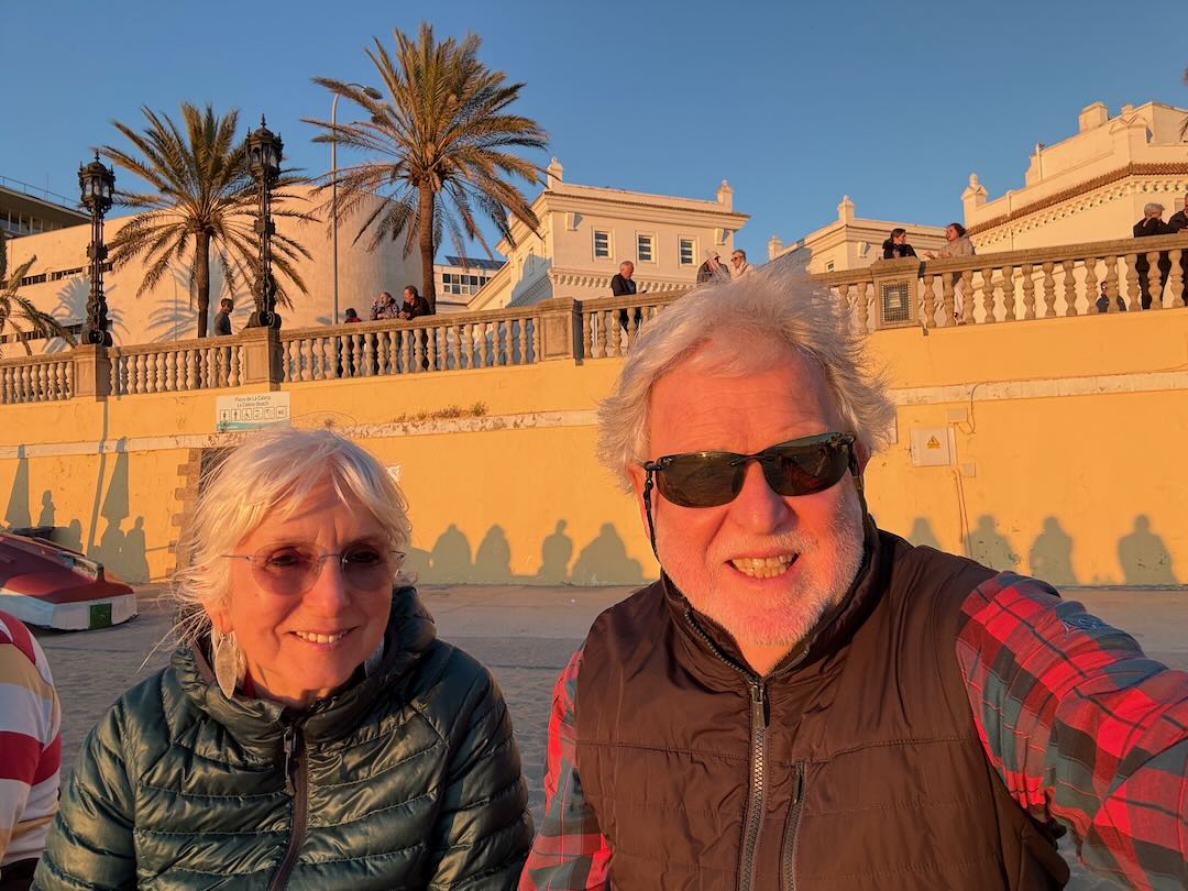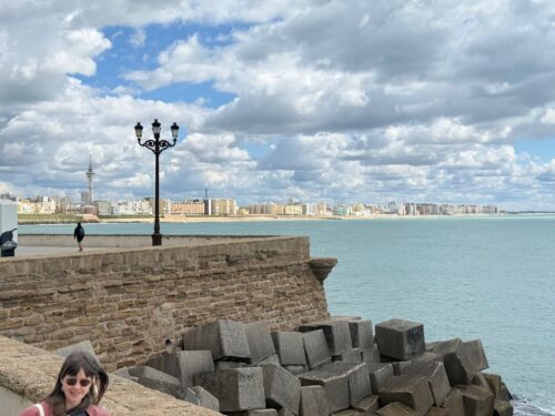 In Cádiz, der ältesten Stadt Westeuropas direkt am Atlantik im Südwesten Andalusiens gelegen, haben wir ein Apartment in einer kleinen Gasse mitten in der Altstadt. Die empfohlene Tapas-Bar um die Ecke, öffnet erst um 20:30 Uhr und wir reihen uns in die lange Schlage ein, um noch einen Platz zu ergattern. Die Sprachschule für den zweiwöchiger Sprachkurs ist in 10 Minuten Fußweg zu erreichen. Erst zwei Teilnehmern und ab dem zweiten Tag vormittags Einzelunterricht. Nachmittags haben Ruth und ich Zeit die sehr schöne Altstadt von Cadiz zu genießen. Leckeres Essen gibt es in den verschiedenen Tapas-Bars, im Fisch-Restaurant oder an der Bar direkt am Stadtstrand. Die langen und noch einsamen Sandstände südlich Cadiz laden zu langen, sonnigen Strandspaziergängen im Wind des Atlantiks ein. Wochenausflug nach Jerez de la Frontera mit Besichtigung des Alcázar aus der maurischen Zeit des 11. Jahrhunderts.