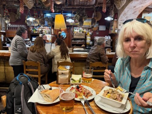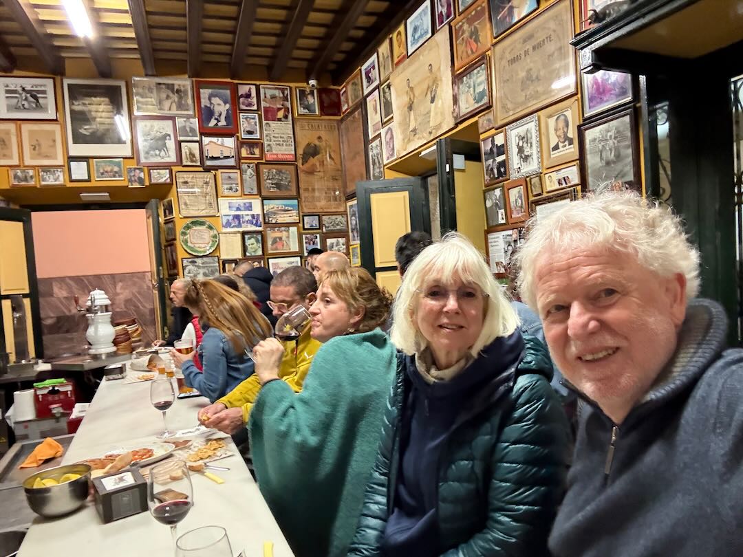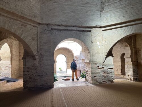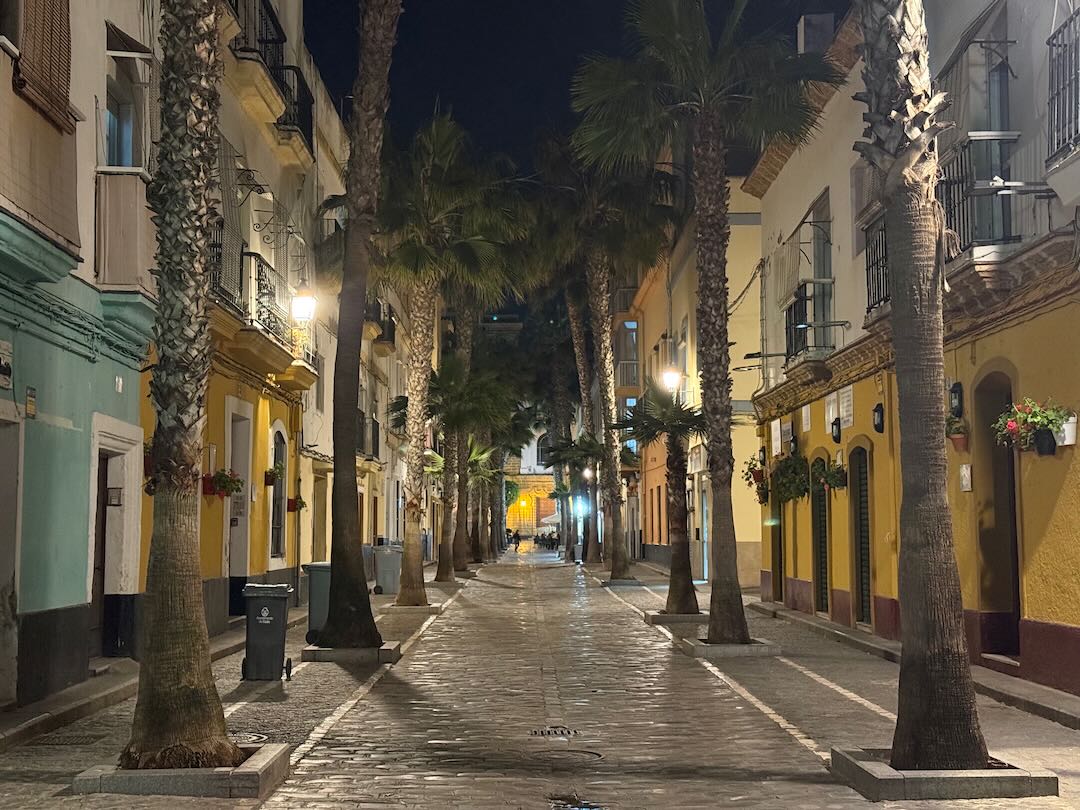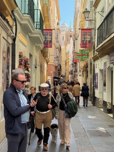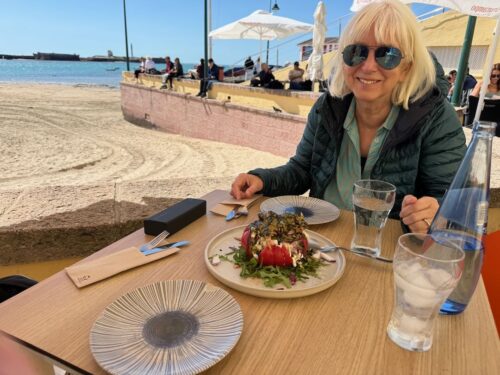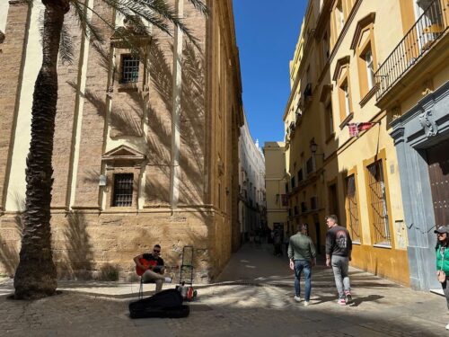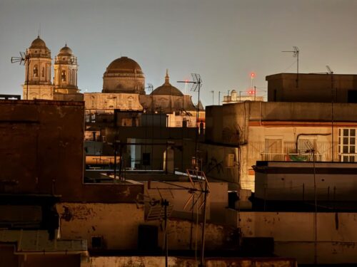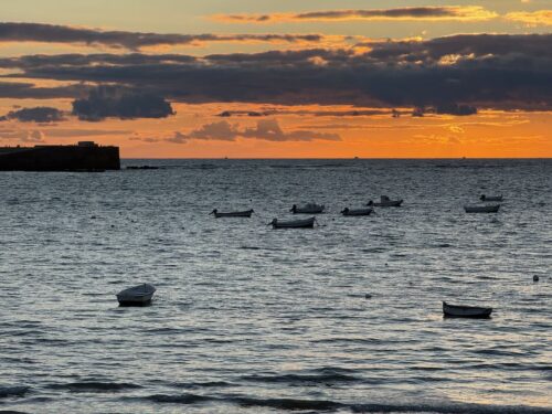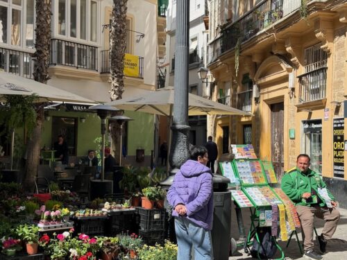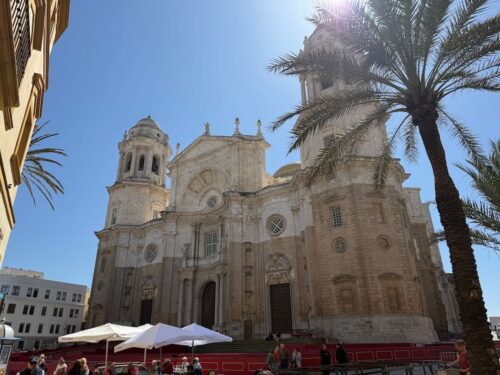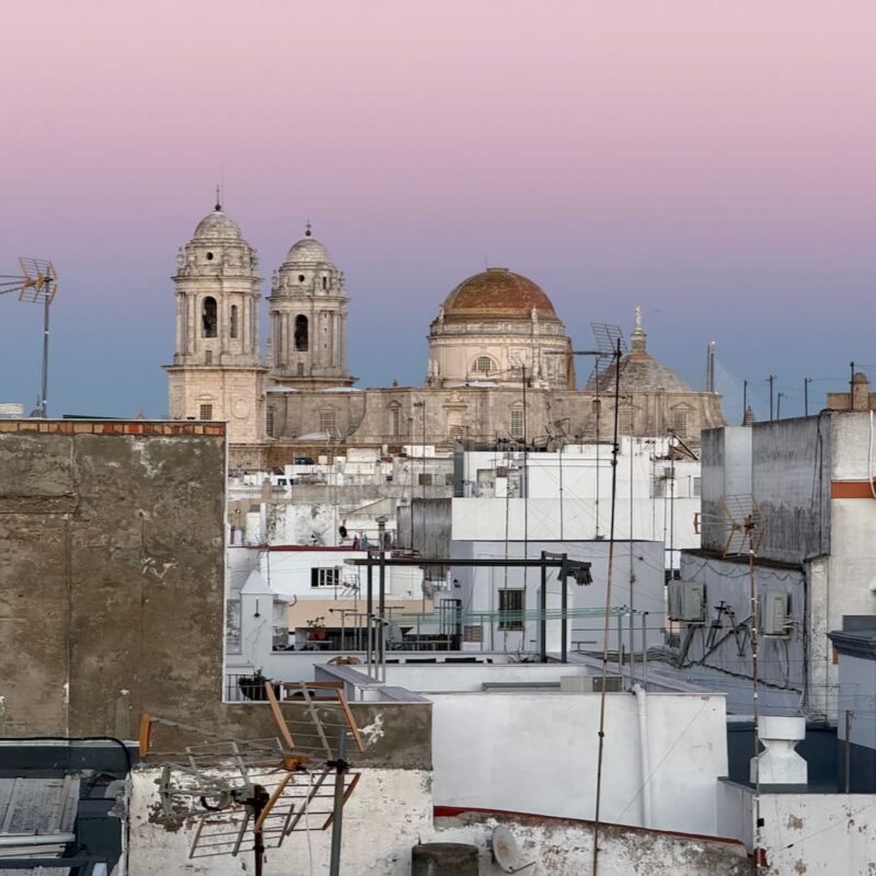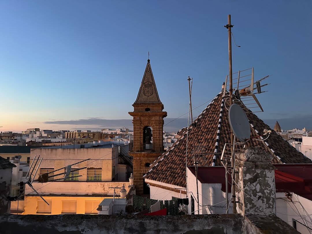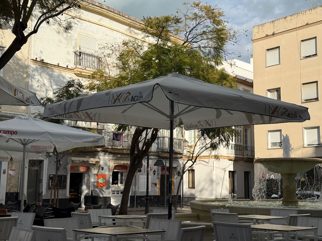 In Cádiz, der ältesten Stadt Westeuropas direkt am Atlantik im Südwesten Andalusiens gelegen, haben wir ein Apartment in einer kleinen Gasse mitten in der Altstadt. Die empfohlene Tapas-Bar um die Ecke, öffnet erst um 20:30 Uhr und wir reihen uns in die lange Schlage ein, um noch einen Platz zu ergattern. Die Sprachschule für den zweiwöchiger Sprachkurs ist in 10 Minuten Fußweg zu erreichen. Erst zwei Teilnehmern und ab dem zweiten Tag vormittags Einzelunterricht. Nachmittags haben Ruth und ich Zeit die sehr schöne Altstadt von Cadiz zu genießen. Leckeres Essen gibt es in den verschiedenen Tapas-Bars, im Fisch-Restaurant oder an der Bar direkt am Stadtstrand. Die langen und noch einsamen Sandstände südlich Cadiz laden zu langen, sonnigen Strandspaziergängen im Wind des Atlantiks ein. Wochenausflug nach Jerez de la Frontera mit Besichtigung des Alcázar aus der maurischen Zeit des 11. Jahrhunderts.